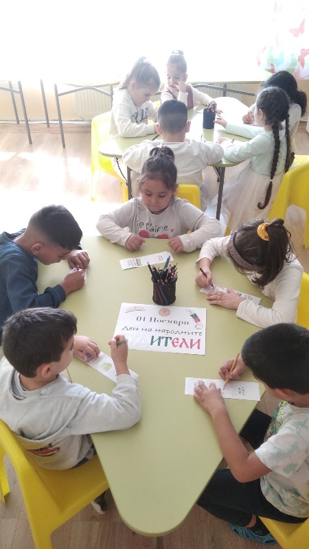 Децата от група "Врабчета" отдадоха почит и уважение към делото на книжовниците, просветителите, борците за национално освобождение, съхранили през вековете духовните ценности на българската нация със стихчета, беседа, песен и специално изработени книгоразделители, който да ползват с радост със своите родители.