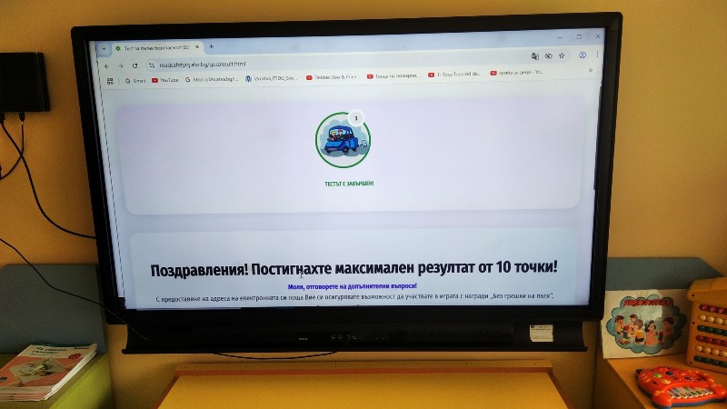Освен да проверят и обогатят познанията си за правилата за пътна безопасност, с решаване на теста „Без грешки на пътя“ те се включиха и в томбола с награди!. С тази дейност България се включва в европейската инициатива „Заедно за безопасността на децата на пътя“, която обединява държавни органи и организации за безопасност на движението по пътищата, застрахователни асоциации и образователни институции от осем европейски държави.
