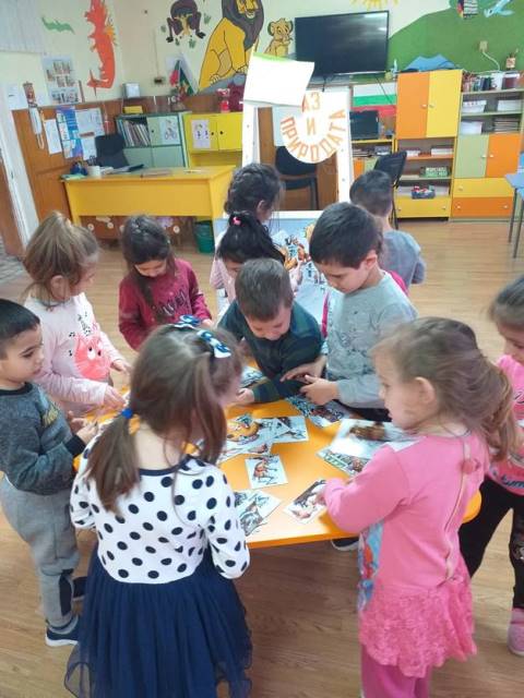 Приказкита са доказани със своето благотворно влияние върху въображението на децата. Ето защо в групата ние често четем, разказваме, подреждаме моменти от приказки с магнитни карти и правим драматизации.