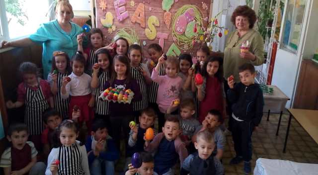 Шарени яйца боядисаха малките деца от групата в очакване и подготовка за Великден - месец април 2019 година.